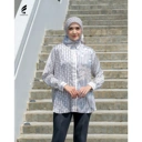 Model baju kemeja atasan wanita, dengan detail krah di leher. Manset tangan untuk wudhu frendly dan full kancing aktif tertutup, jadi rapi dan tambil cantik.
